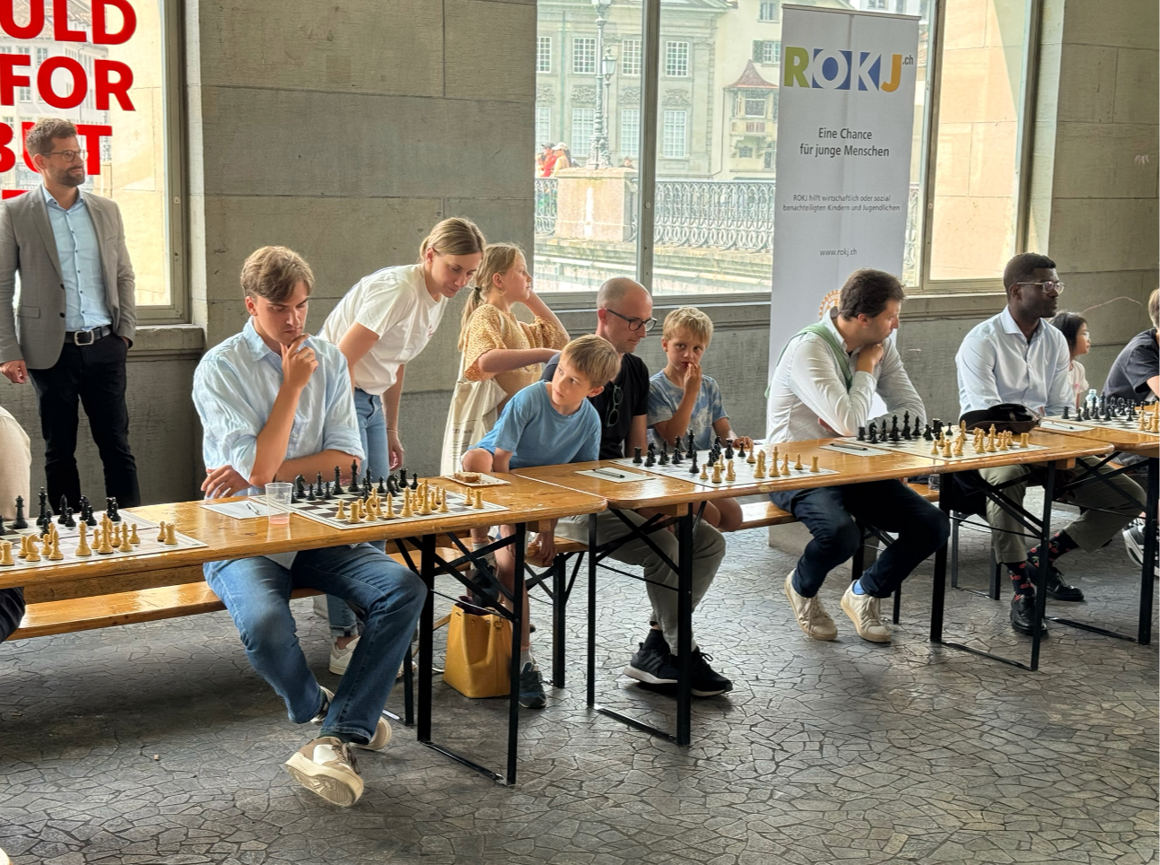 Auf Initiative des Rotary-Clubs Zürich-Turicum spielte Rot. Peter Pfiffner im Simultanschach gegen 16 junge und jung gebliebene Schachbegeisterte. Der Erlös aus dieser Benefizveranstaltung kommt zu gleichen Teilen der Kinder-Reha Schweiz in Affoltern am Albis und dem Verein ROKJ Limmattal/Knonaueramt zugute.
